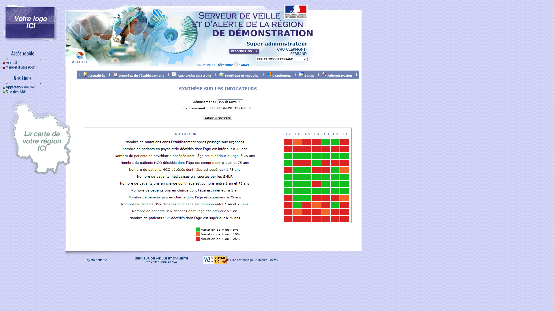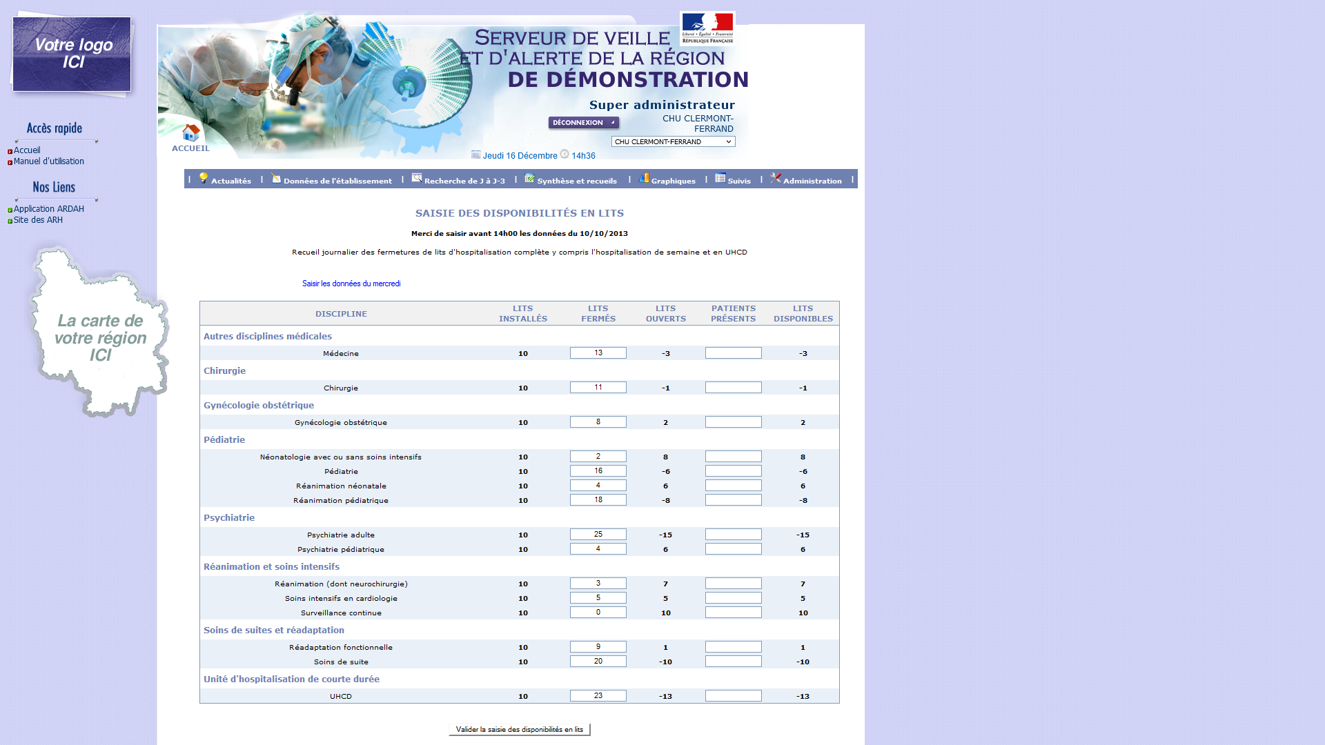 Véritable concentrateur régional, la solution centralise l'ensemble des données de lits disponibles, prévisions de fermetures de lits, indicateurs d'urgence et pré-hospitaliers puis les transmet quotidiennement à Santé Publique France.